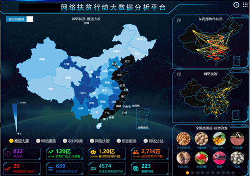 - 以地图方式对全国网络扶贫行动成果进行可视化展示。